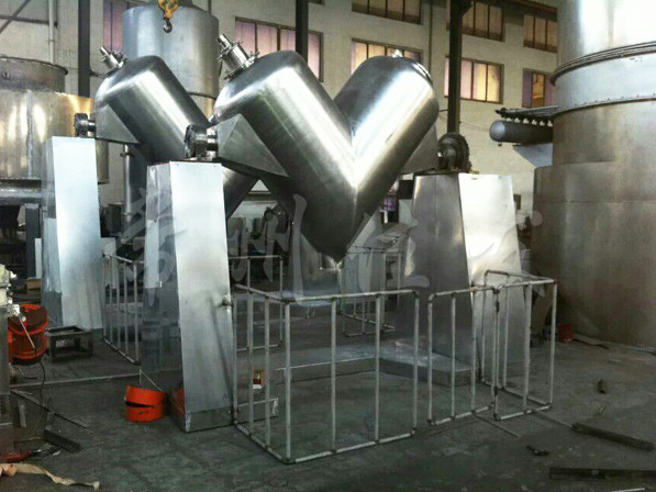 該機(jī)通過(guò)機(jī)械傳動(dòng),使不對(duì)稱的V型圓柱體內(nèi)的物料做往復(fù)翻動(dòng),達(dá)到均勻混合之目的。