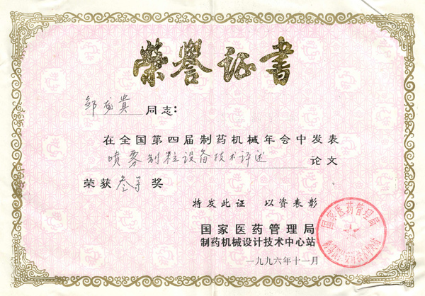 獲獎(jiǎng)證書