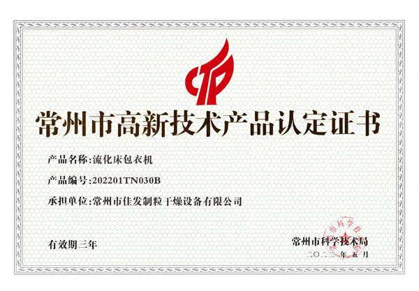 高新技術(shù)產(chǎn)品認(rèn)定證書(shū)