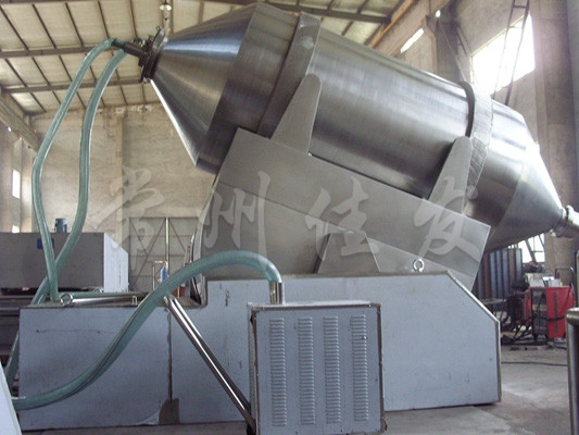 This machine is widely used in industries such as medicine, chemicals, food, dyes, feed, fertilizers, pesticides, etc., especially suitable for mixing various solid materials with large tonnage (1000-10000L). The mixing cylinder of this machine not only drives but also participates in swinging, allowing the materials in the cylinder to be fully mixed. The discharge of the mixing cylinder is equipped with spiral blades, making the machine characterized by rapid mixing, large mixing volume, and convenient discharge.